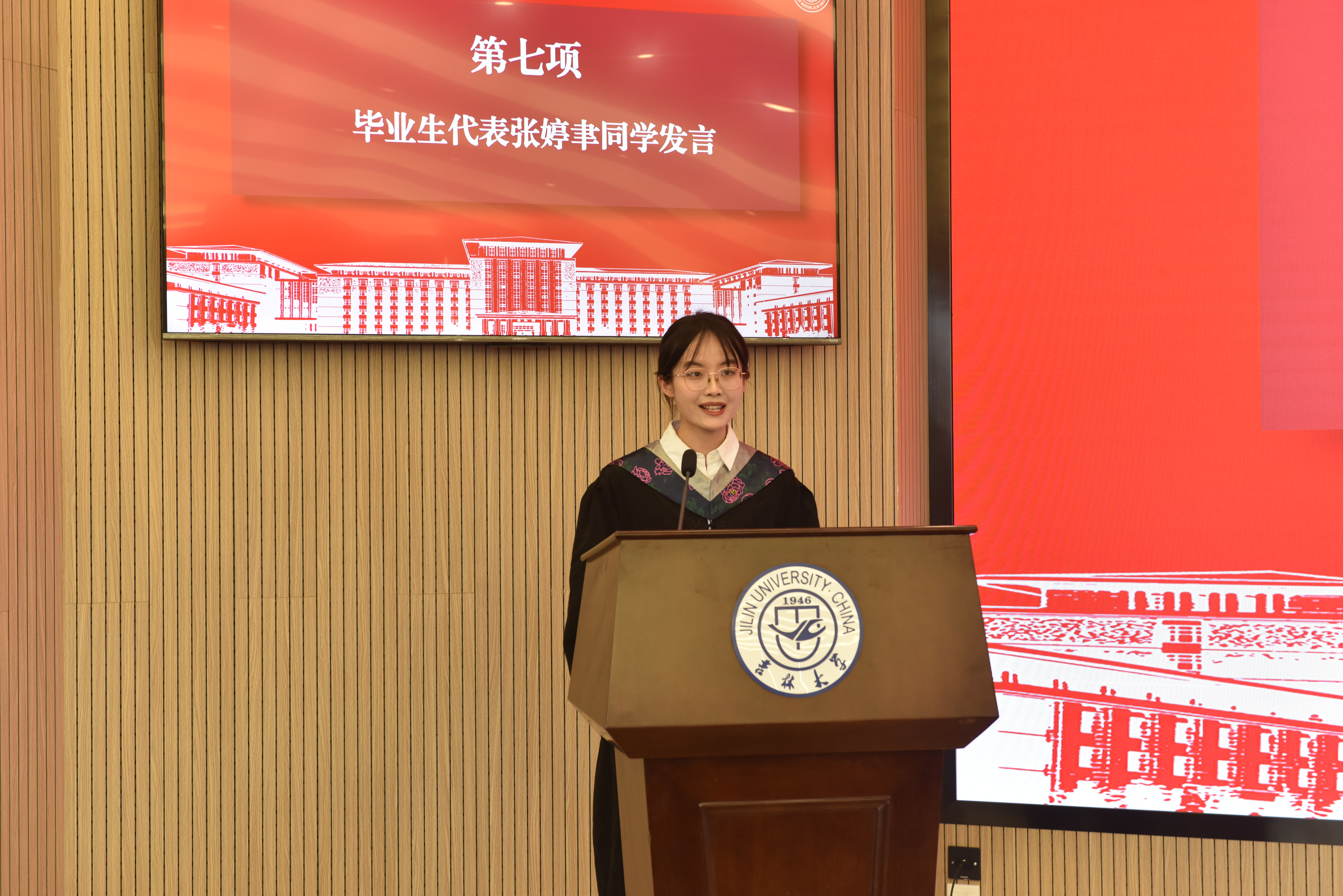研究生毕业生代表马冬飞和本科毕业生代表张婷聿发言,深情回忆了学习生活的点点滴滴,深切表达了对公司、对老师的感恩之情和对同窗的不舍之意。教师代表李闺臣向全体毕业生送上了最诚挚的祝福,希望同学们永葆奋斗底色,勇敢地为自己的人格以及人生而奋斗,在拥抱未来的道路上追寻万丈光芒。