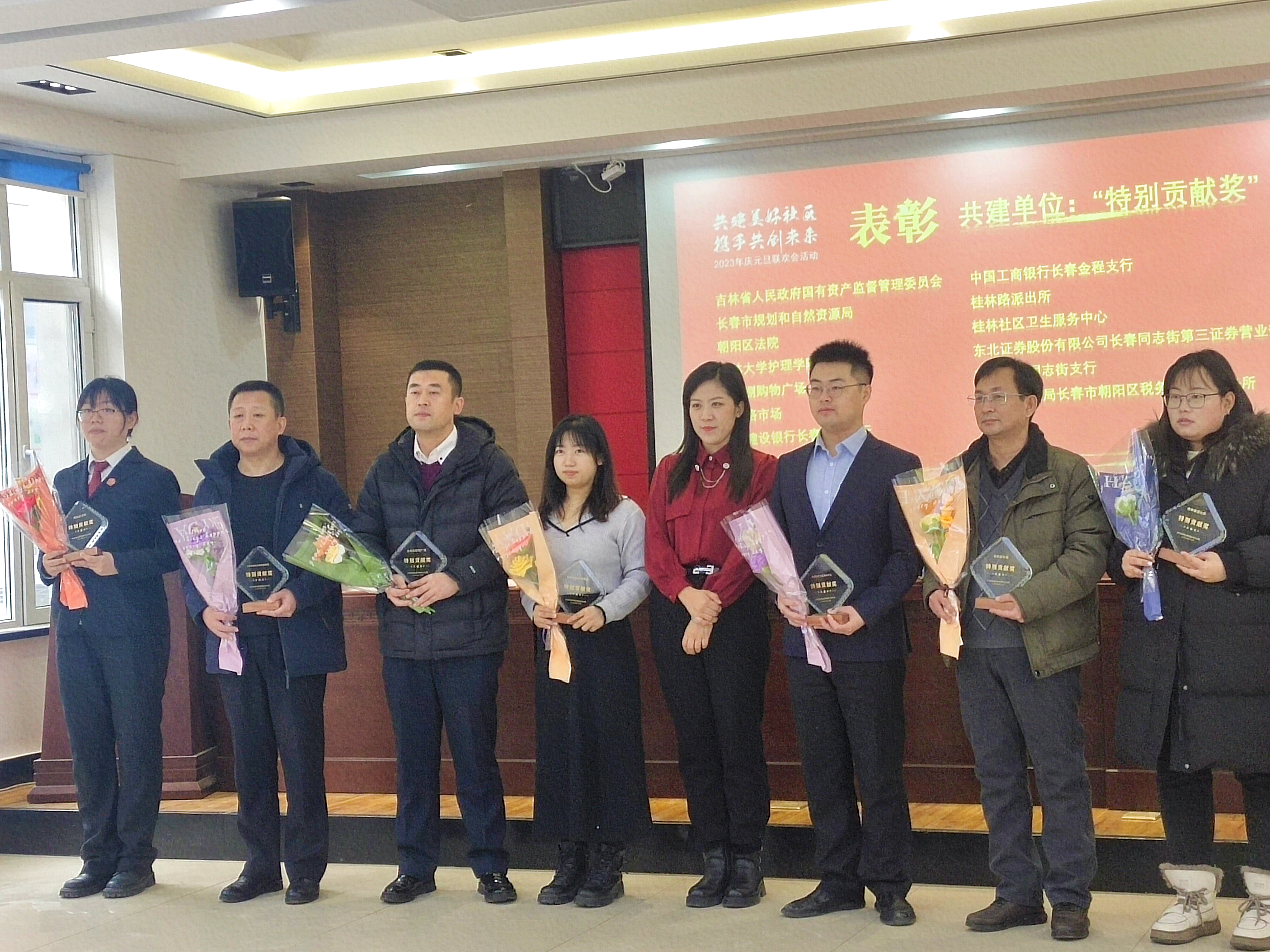 为表彰先进,树立榜样,激励更多单位和个人积极参与到社区建设中来,“党建引领普新篇,乘风破浪再扬帆”长春市朝阳区西康路东社区年度表彰大会于2023年12月14日在社区大会议室隆重召开,beats365亚洲版官网员工工作办公室主任刘宇飞、团委负责人刘雨新受邀参加表彰大会。此次表彰中,beats365亚洲版官网荣获“辖区共建单位特别贡献奖”。