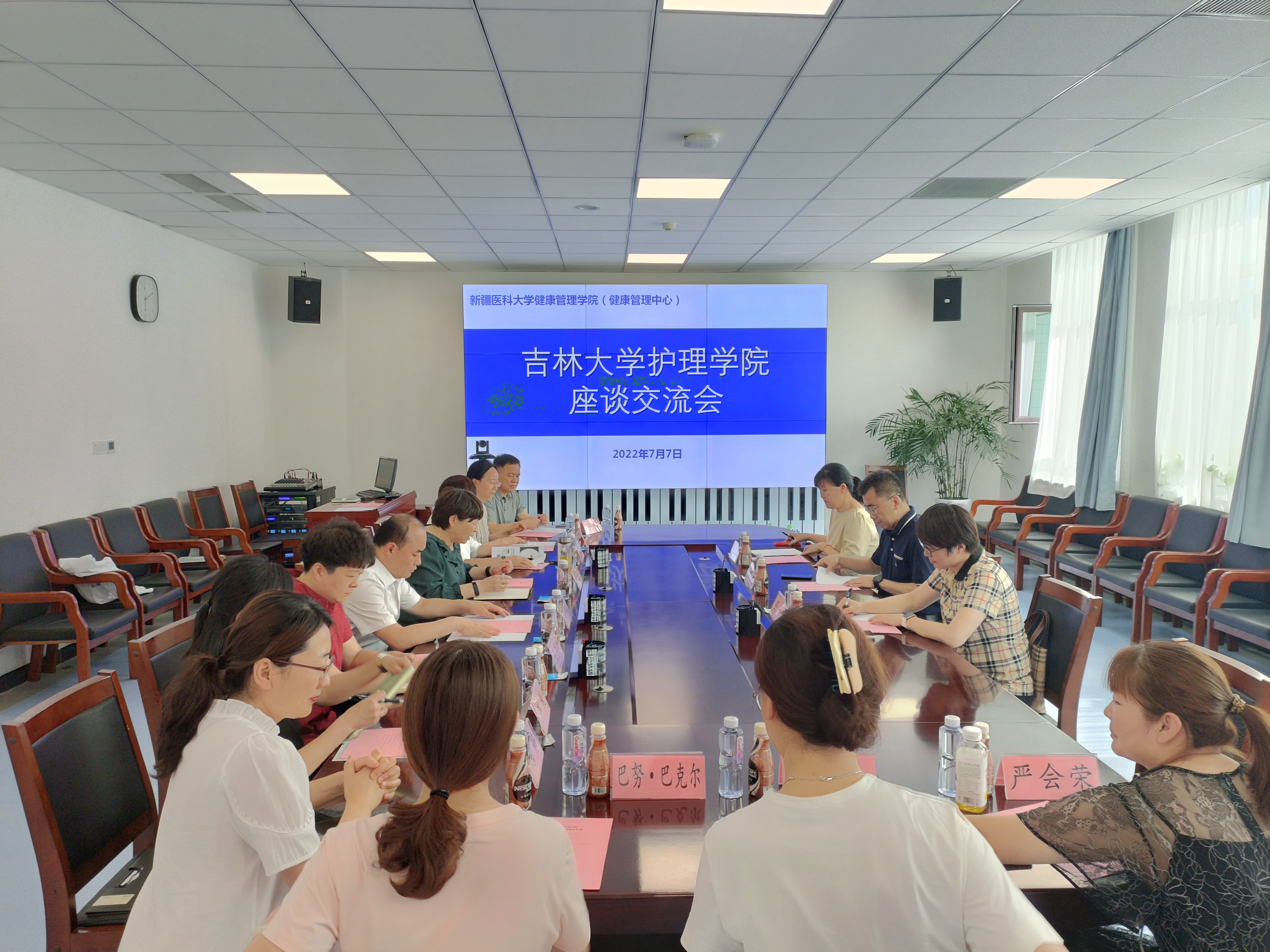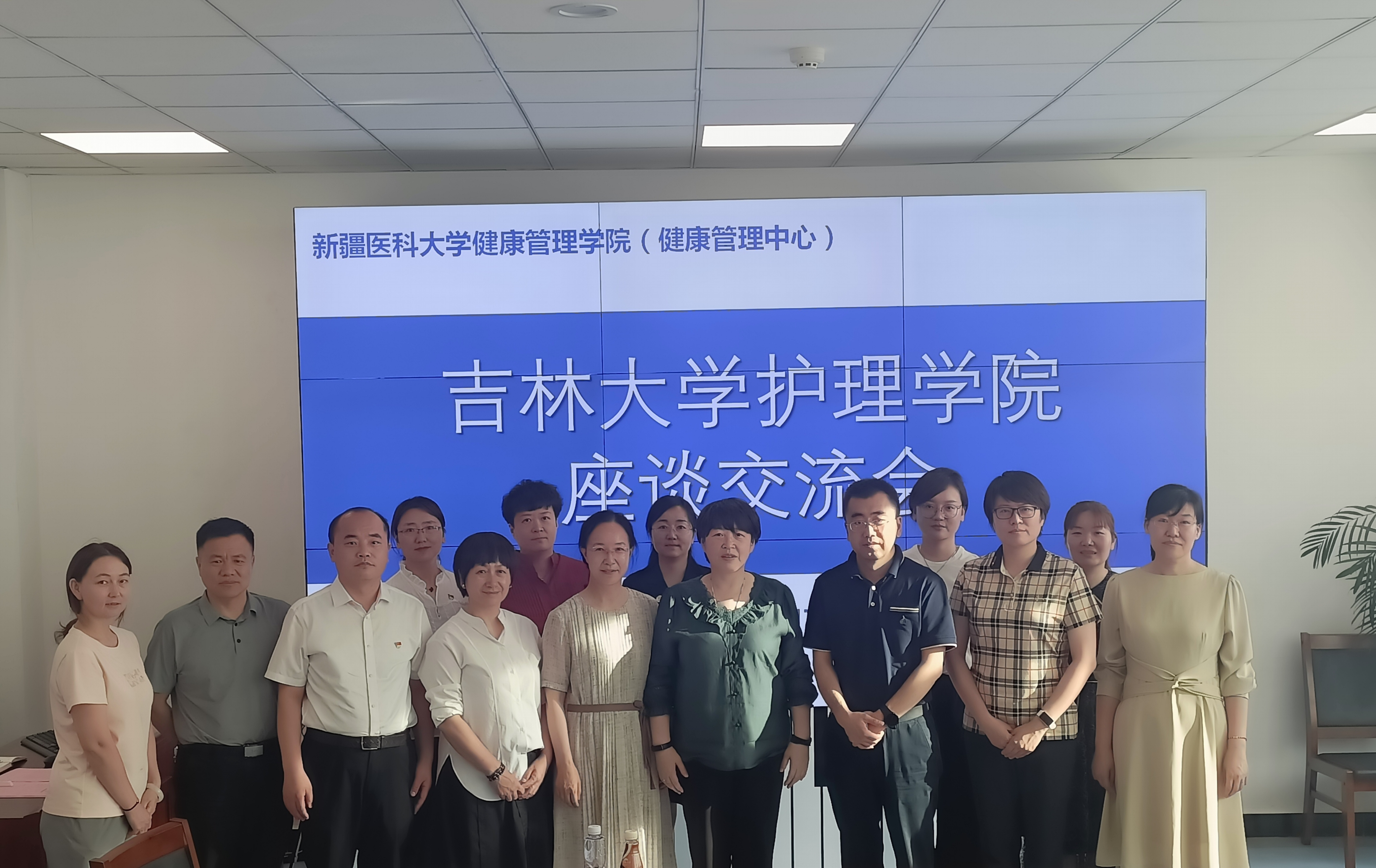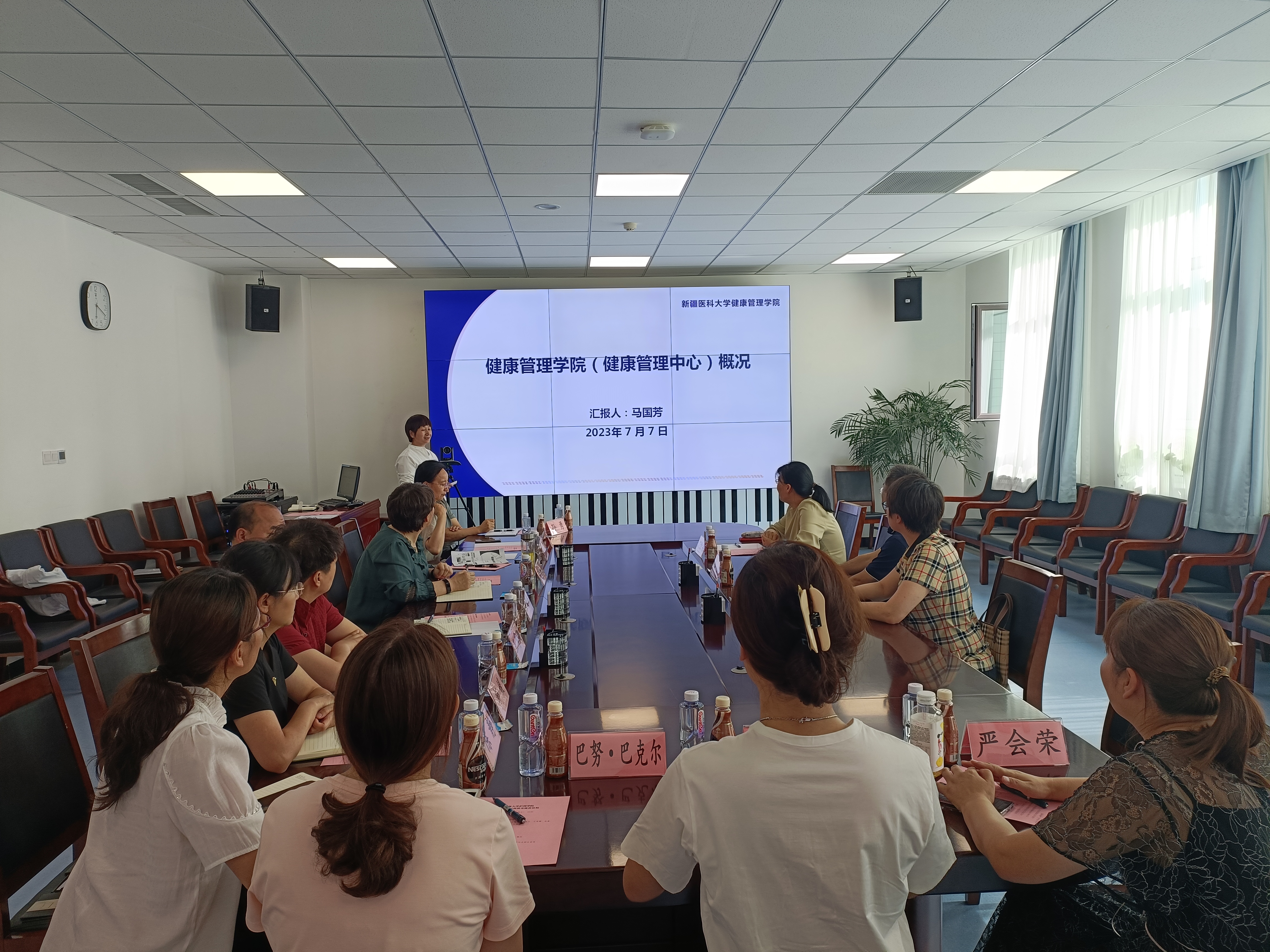2023年7月7日,beats365亚洲版官网副经理李峰、经理助理彭歆、康复治疗学教研室主任赵丽晶一行3人,前往新疆医科大学健康管理公司进行两校合作交流座谈。
