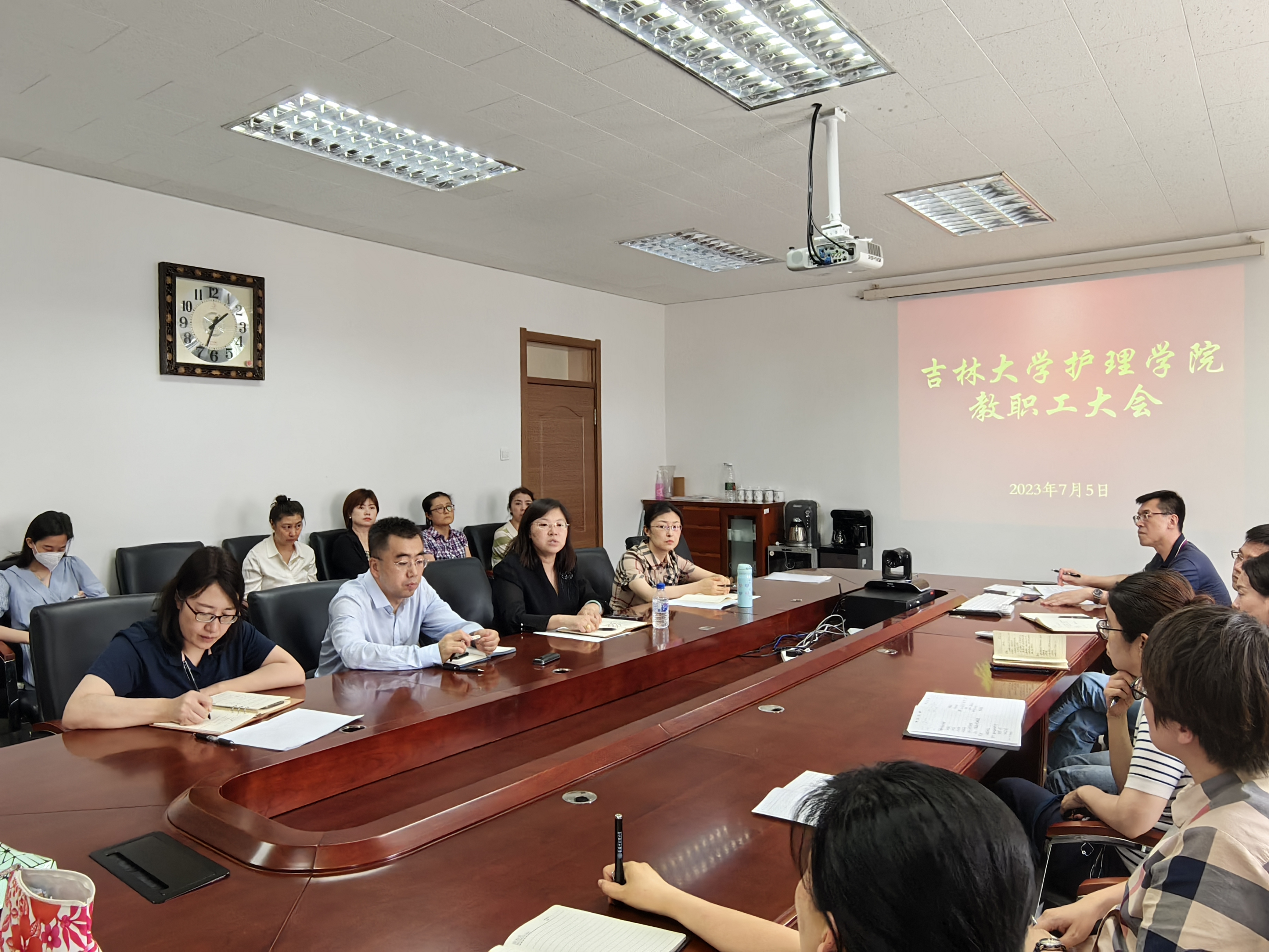 7月5日下午,beats365亚洲版官网在三楼会议室召开2023年第六次全院教职工大会,全体教职工参加会议。会议由副经理李峰主持。