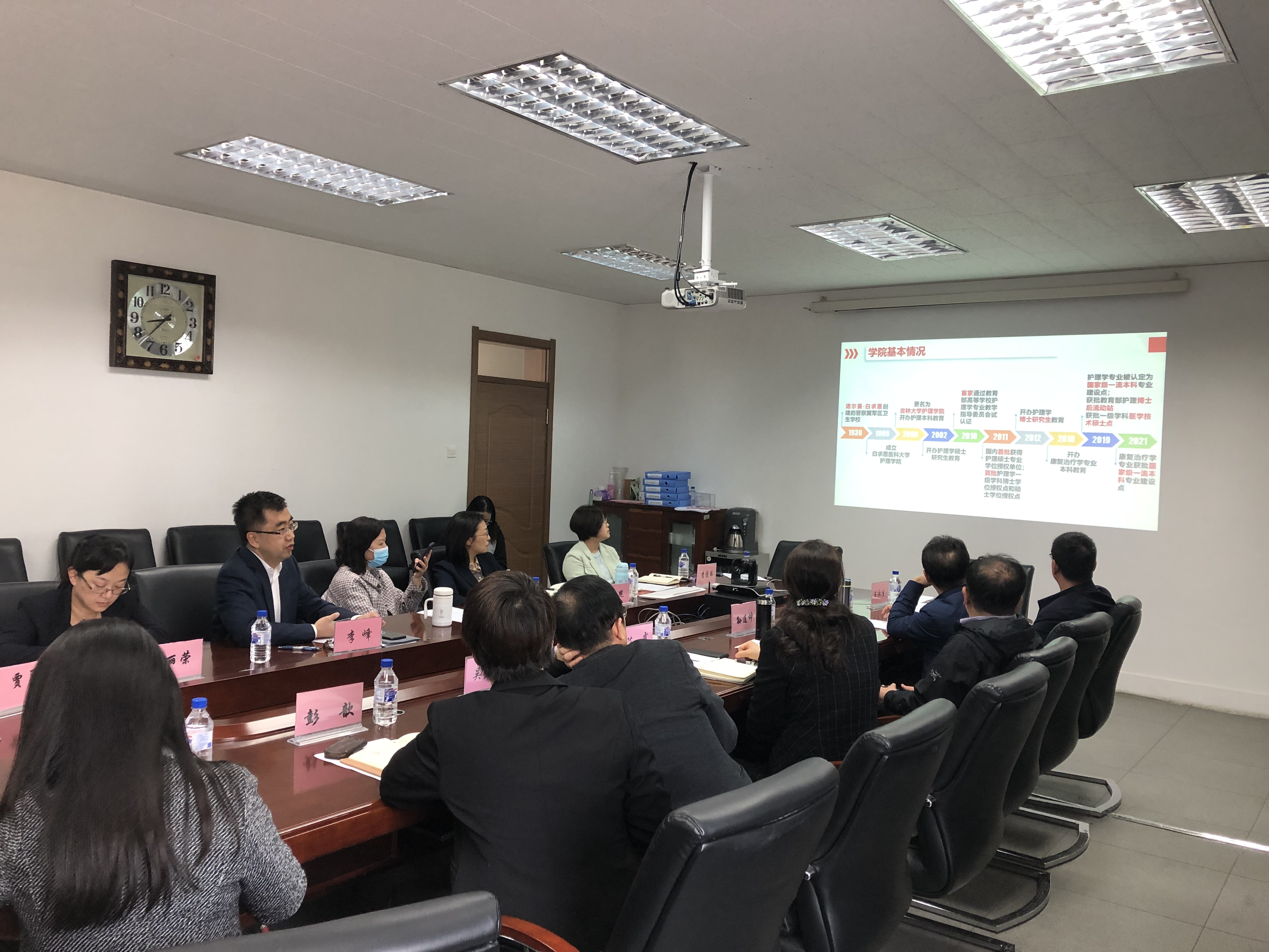 首先,陈霞副学部长对本次调研活动的目的及安排进行了简要介绍。护理公司李峰副经理从打造学科特色、重视人才培养,积淀科研实力、科研成果凸显、研究生教学改革项目数量和质量呈较好态势等方面汇报了近几年研究生管理与培养等整体情况。