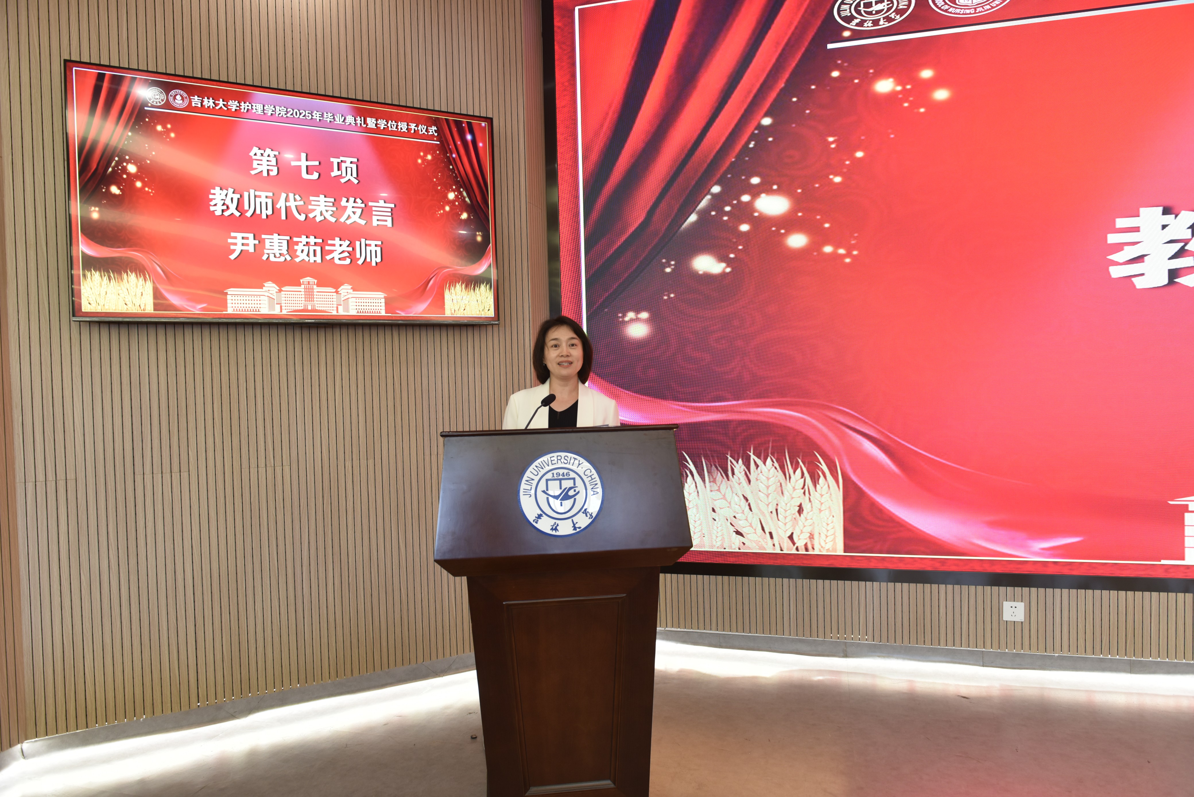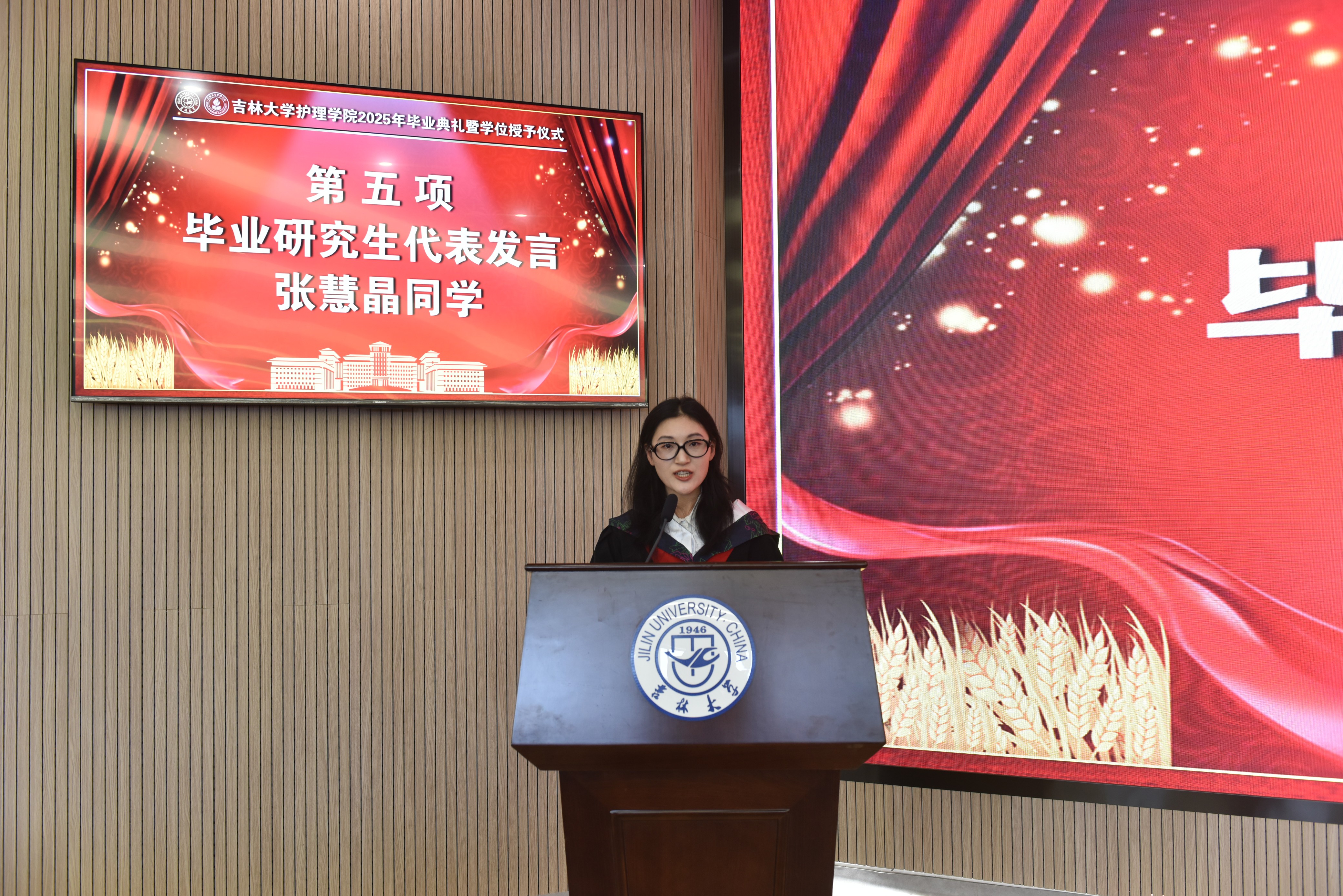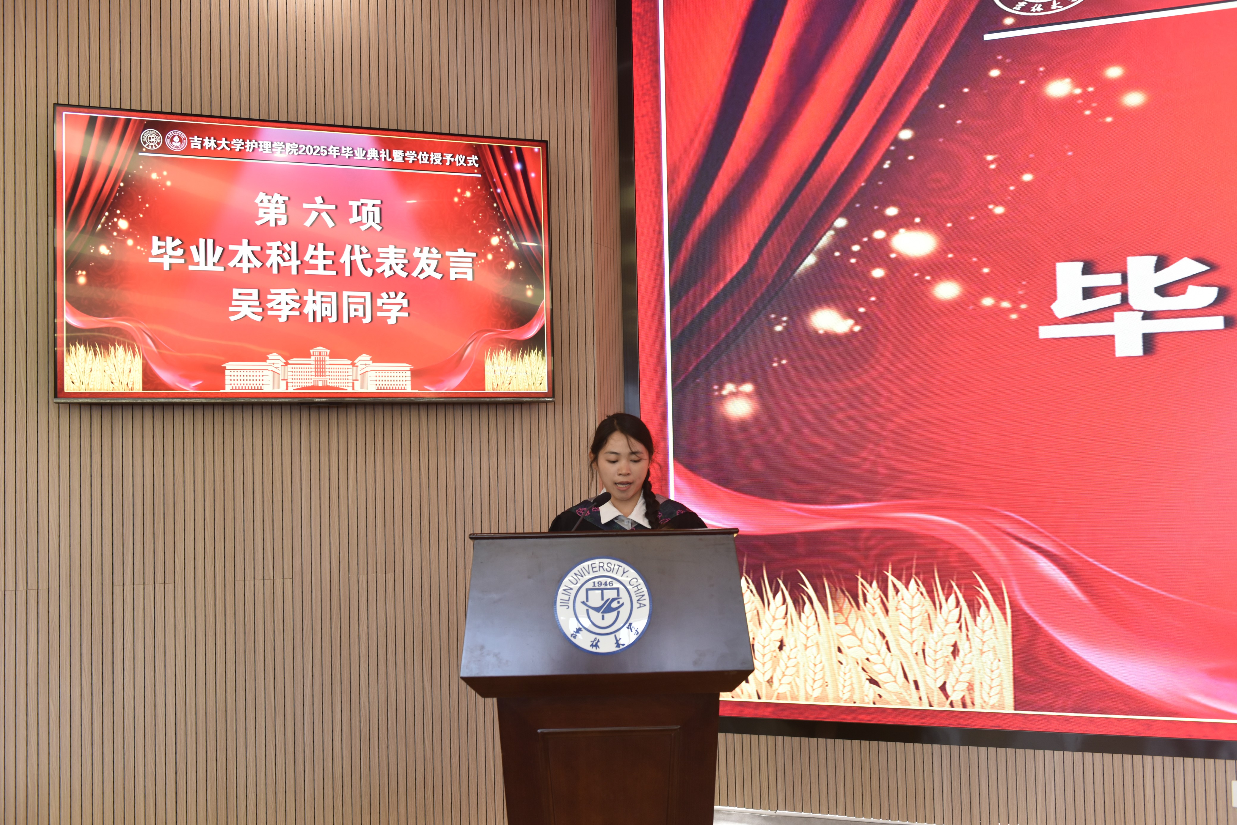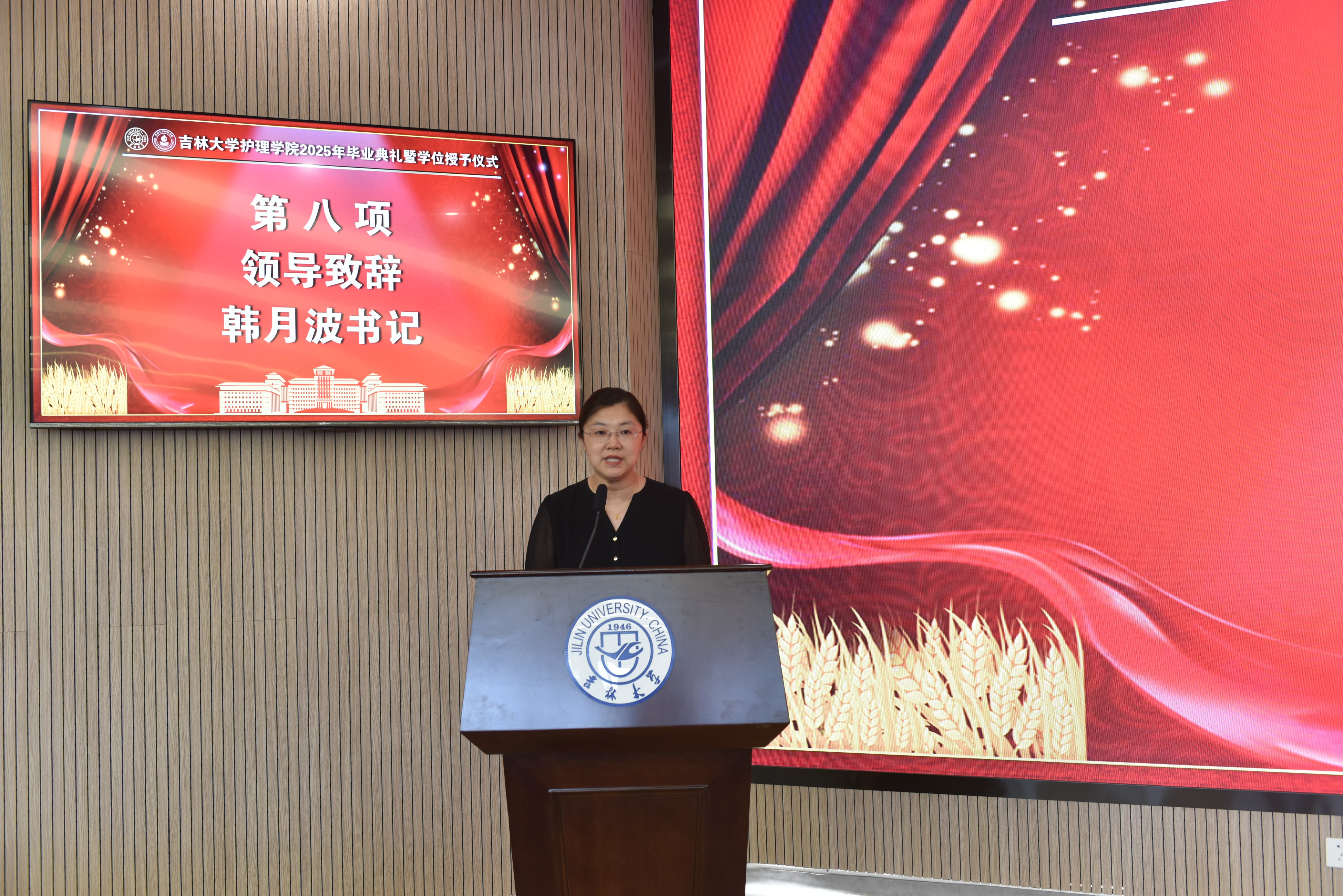 最后,韩月波书记深情致辞,回顾毕业生在beats365亚洲版官网的成长历程,并表达了对全体毕业生的殷切希望和真挚祝福:一是希望同学们坚定理想信念,坚守使命初心,以奋斗之我、青春之我,担起历史赋予青年一代的使命;二是希望同学们秉承白医精神,践行医者仁心,不断用实际行动擦亮吉大护理的金字招牌;三是希望同学们矢志不渝奋斗,永葆干事恒心,以守正创新、服务大局的自觉意识实心干事,用行动诠释护理人和康复人的责任与担当。