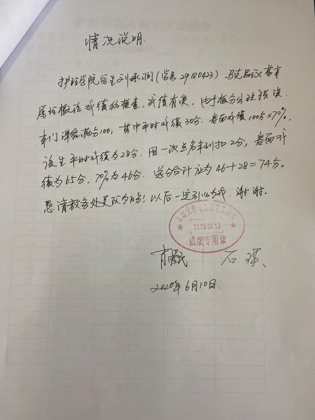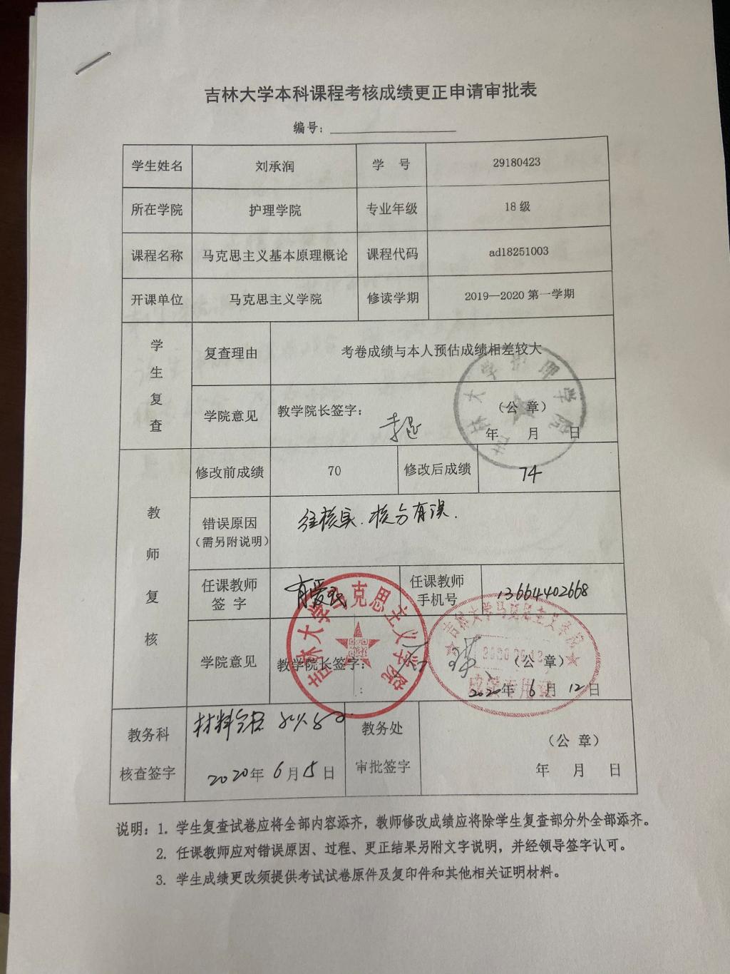 根据《关于进一步明确本科生课程考核等有关问题的通知》(校教字〔2018〕47号)文件有关精神,现对beats365亚洲版官网2018级刘承润同学(学号:29180423)2019-2020-1学期课程成绩更正如下: