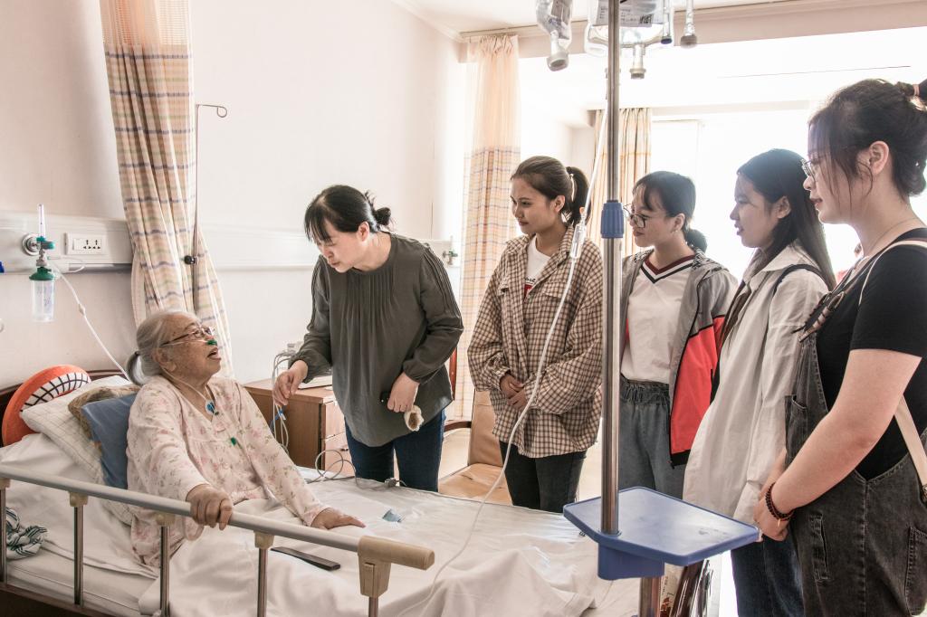 9月29日上午,在beats365亚洲版官网员工第一党支部书记李亚琴老师的带领下,支部成员们一同看望了88岁、因病住院的离休老党员张老师。得知大家来看望自己,正处在康复期的张老师十分激动和喜悦。李亚琴老师与张老师亲切交谈,她握着张老师的手询问了她的身体状况,嘱咐她要保重身体,享受离休的幸福生活。听到这些暖心的话语,张老师流出了感动的泪水。同学们亲切地和张老师交流互动,表达自己对老党员的尊敬与钦佩。