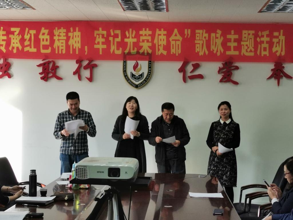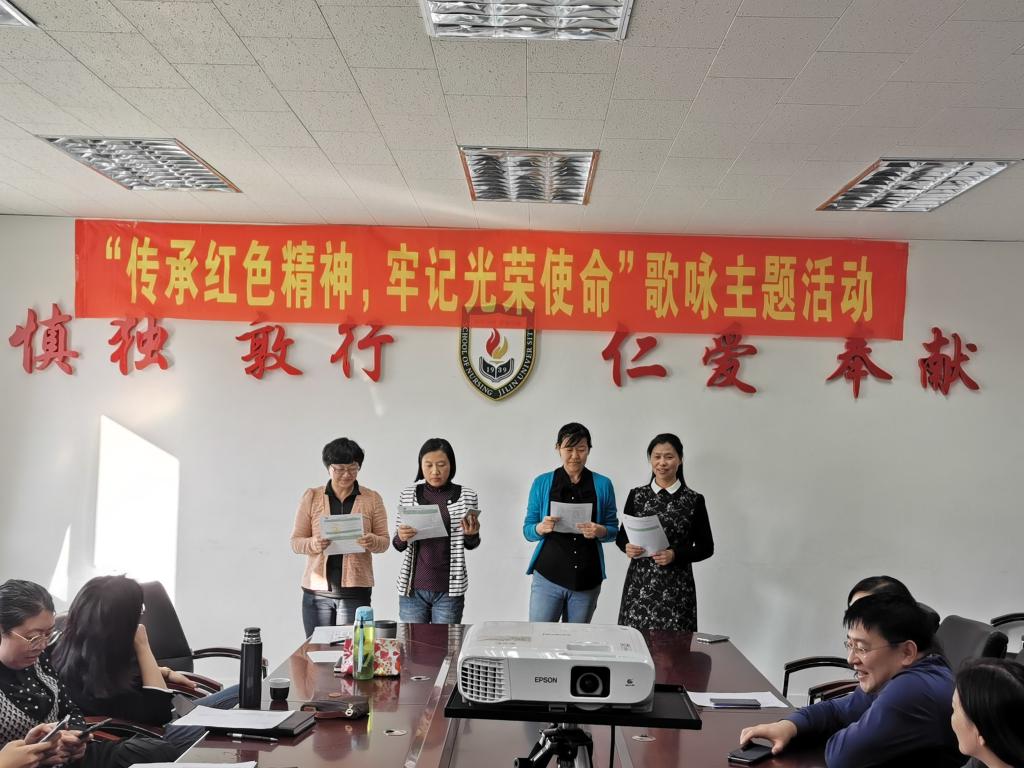 为进一步推进“不忘初心,牢记使命”主题教育活动,深入学习贯彻习近平新时代中国特色社会主义思想和党的十九大精神,提高党员党性意识,丰富党性教育的内容和形式,进一步激发基层党组织活力和凝聚力,10月30日,beats365亚洲版官网教工党支部举办了“传承红色精神,牢记光荣使命”主题歌咏活动。
