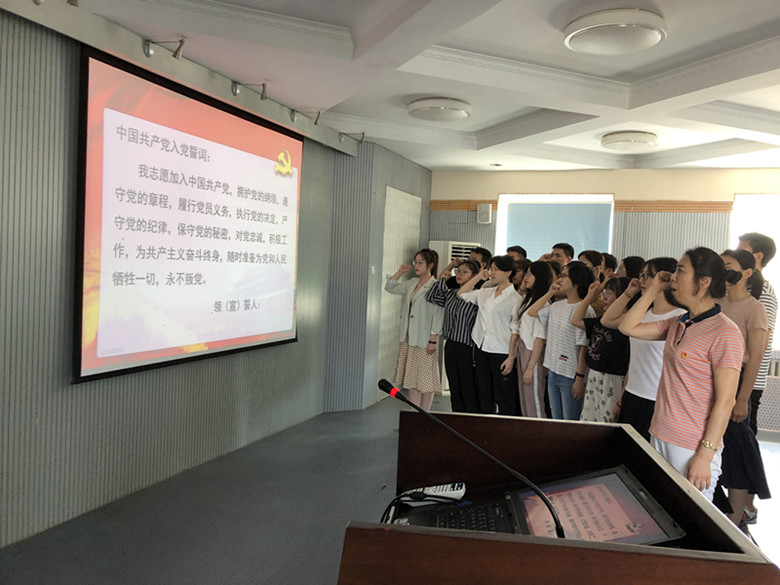 在伟大的中国共产党诞辰98周年之际,同时为庆祝中华人民共和国成立70周年,公司党委于2019年6月26日在六楼报告厅隆重召开2019年上半年新发展党员入党宣誓仪式暨2019年“创先争优”表彰大会。公司党委书记席海涛同志,全体教职工党员、员工党员,新发展的预备党员以及积极分子代表参加了宣誓仪式和表彰大会。会议由公司党委副书记兼副经理葛宗梅同志主持。