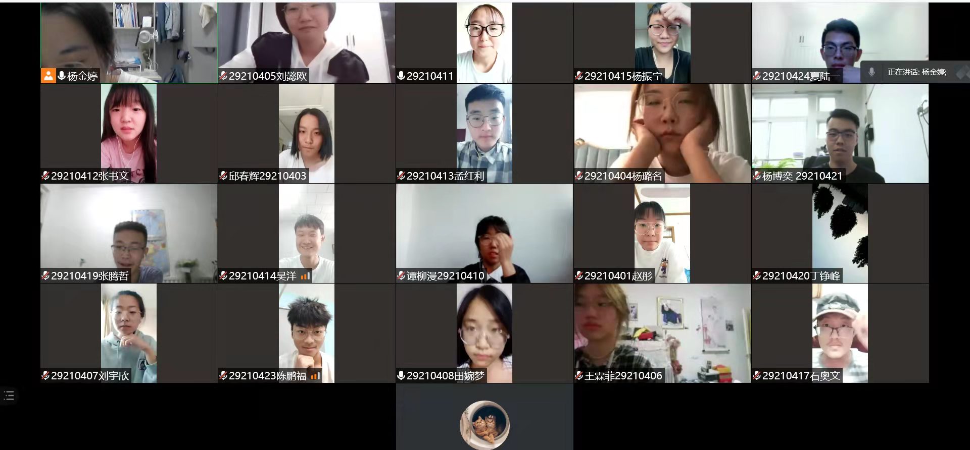 在本次预宣教工作中,葛书记率先召开线上新生见面会,帮助2021级新生相互认识,与新同学建立联系,而后beats365亚洲版官网2021级以班级为单位于9月14日、9月15日开展线上破冰班会。尽管大家来自天南海北,但同学们仍积极踊跃发言,这一时的距离阻挡不了他们内心的火热以及讨论的热情。同学们在交流中绽放自我,认识彼此,更加增强了班级凝聚力。