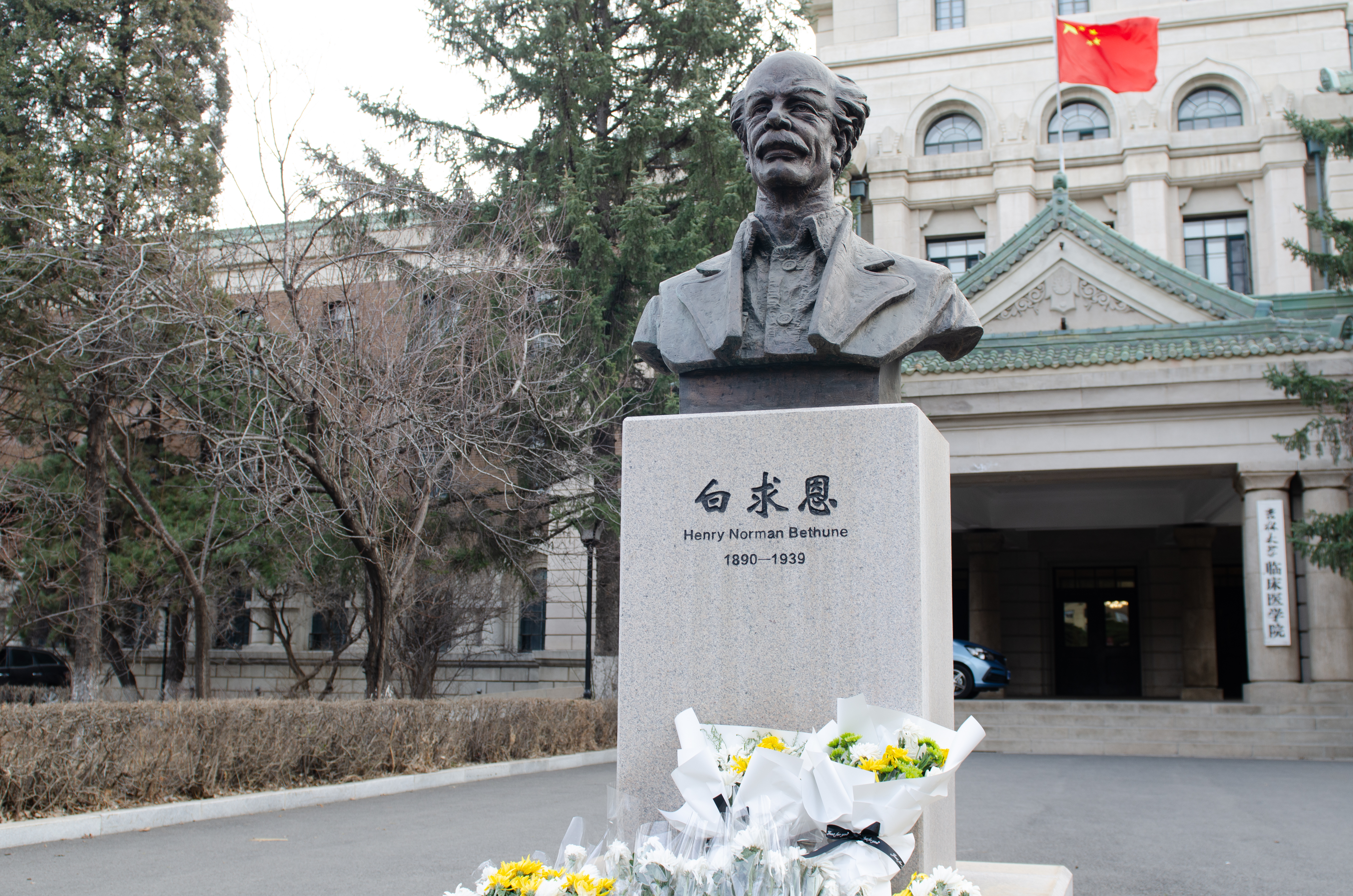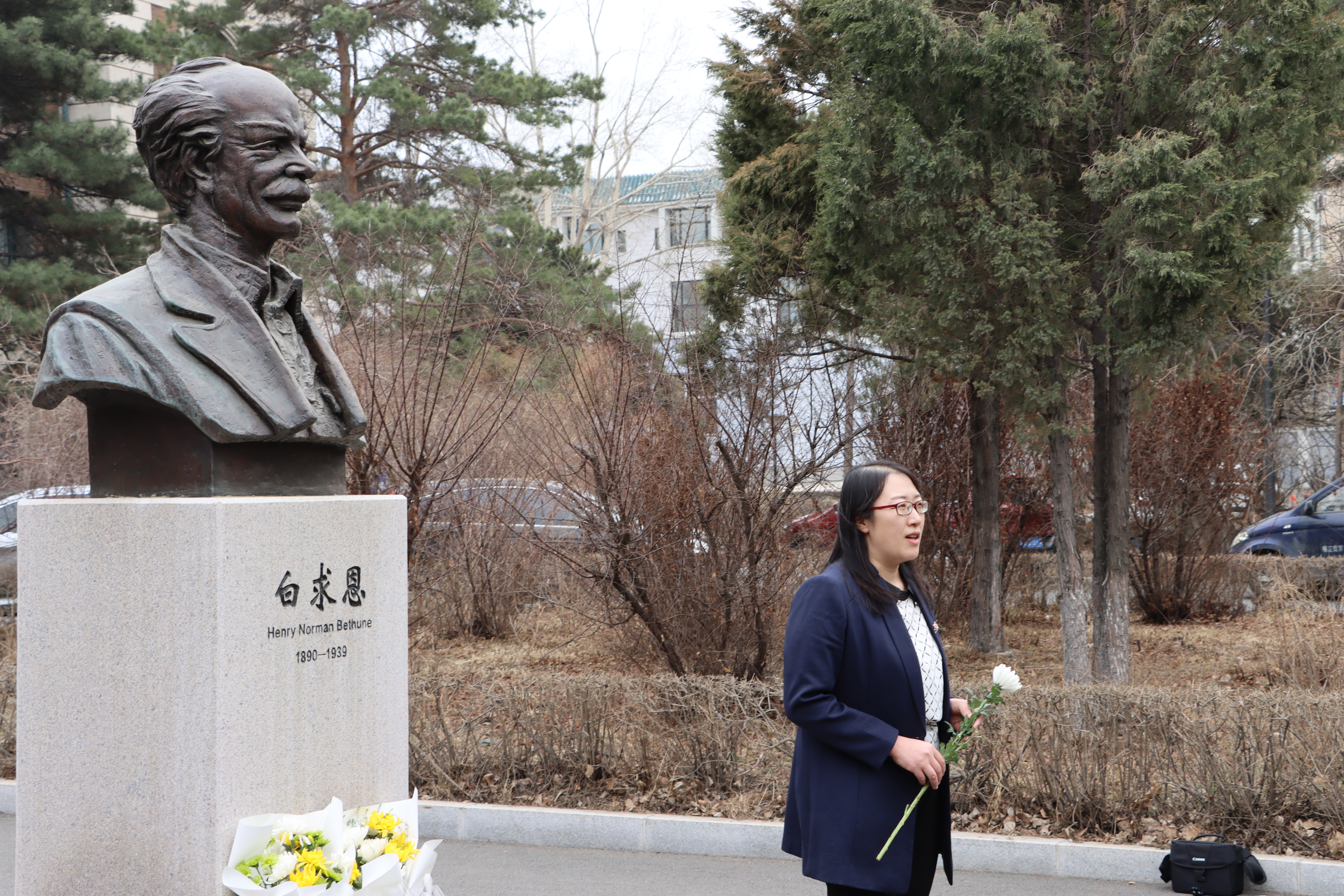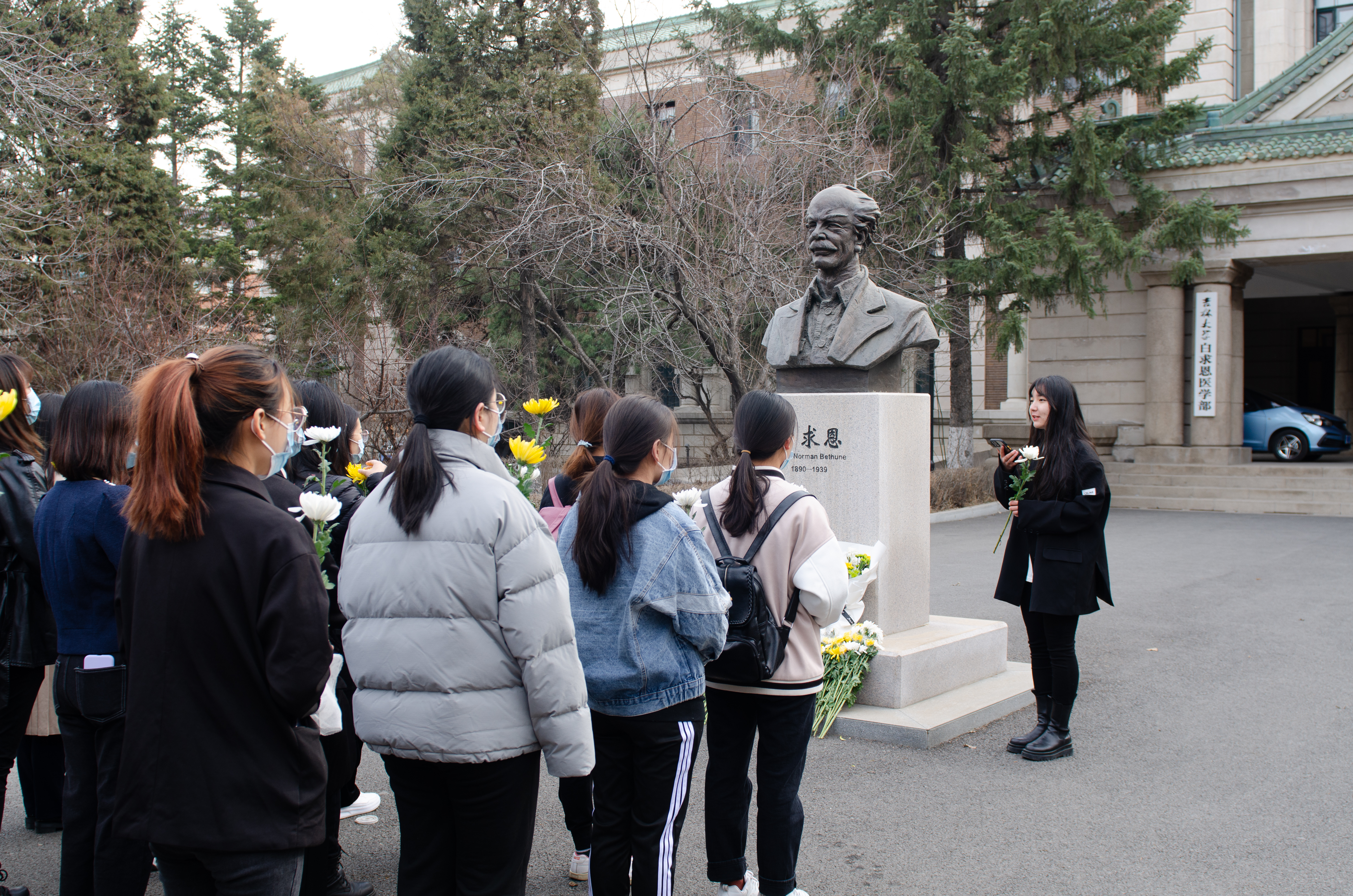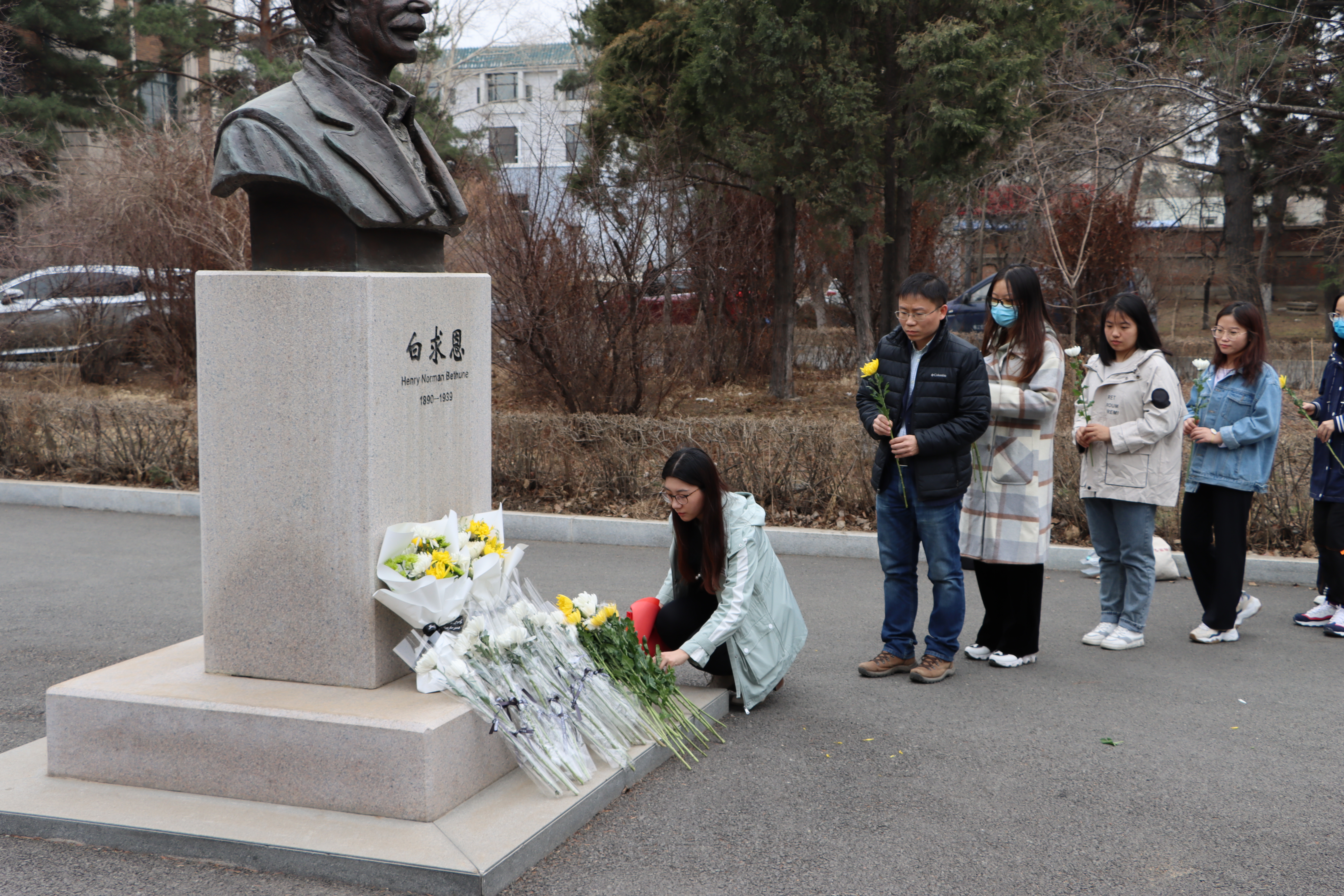 2021年是中国共产党成立一百周年,为缅怀革命先烈,继承革命传统,弘扬爱国主义精神,4月2日,beats365亚洲版官网部分员工党员、入党积极分子、共青团员在新民校区医学部白求恩像前开展了以“折菊遥寄,丰碑长存”为主题的清明祭扫活动,祭奠先贤白求恩同志。
