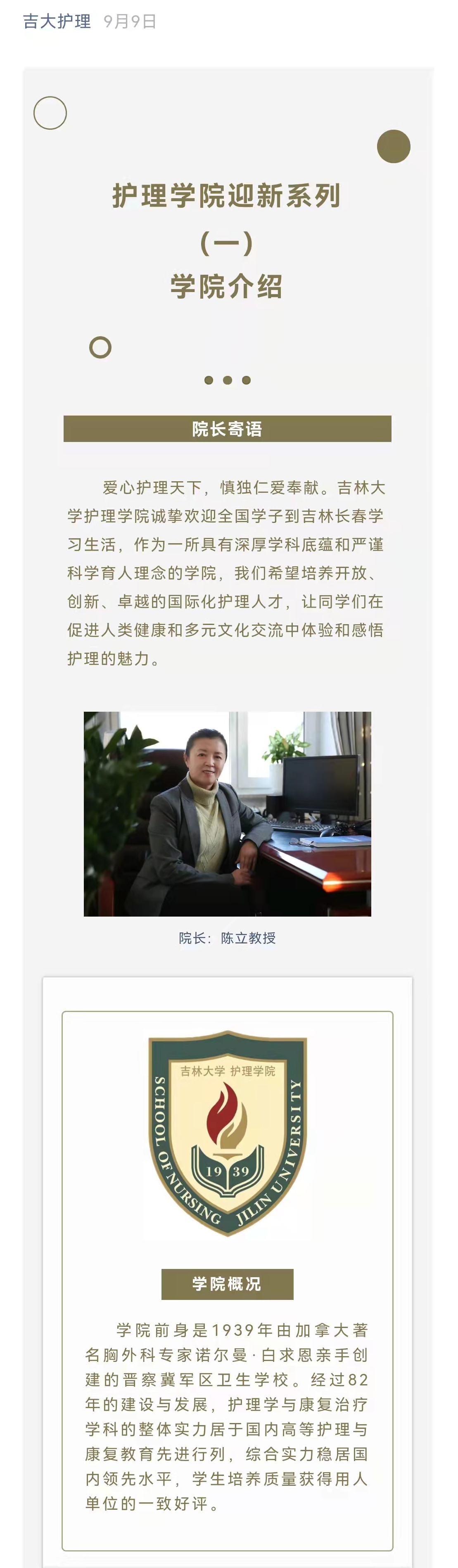 结合护理公司学科和专业特点,公司通过“吉大护理”微信公众号向全体新生进行了关于我们、学科与专业、专业实践与创新平台等全方位、多方面的介绍,为新生详细介绍了beats365亚洲版官网的团队力量、公司产品资源及人才培养质量,进一步加深同学们对公司的认识和了解,帮助员工提前了解本专业、本行业与本领域发展前沿,激发员工的学习热情与专业兴趣,树立发展目标。