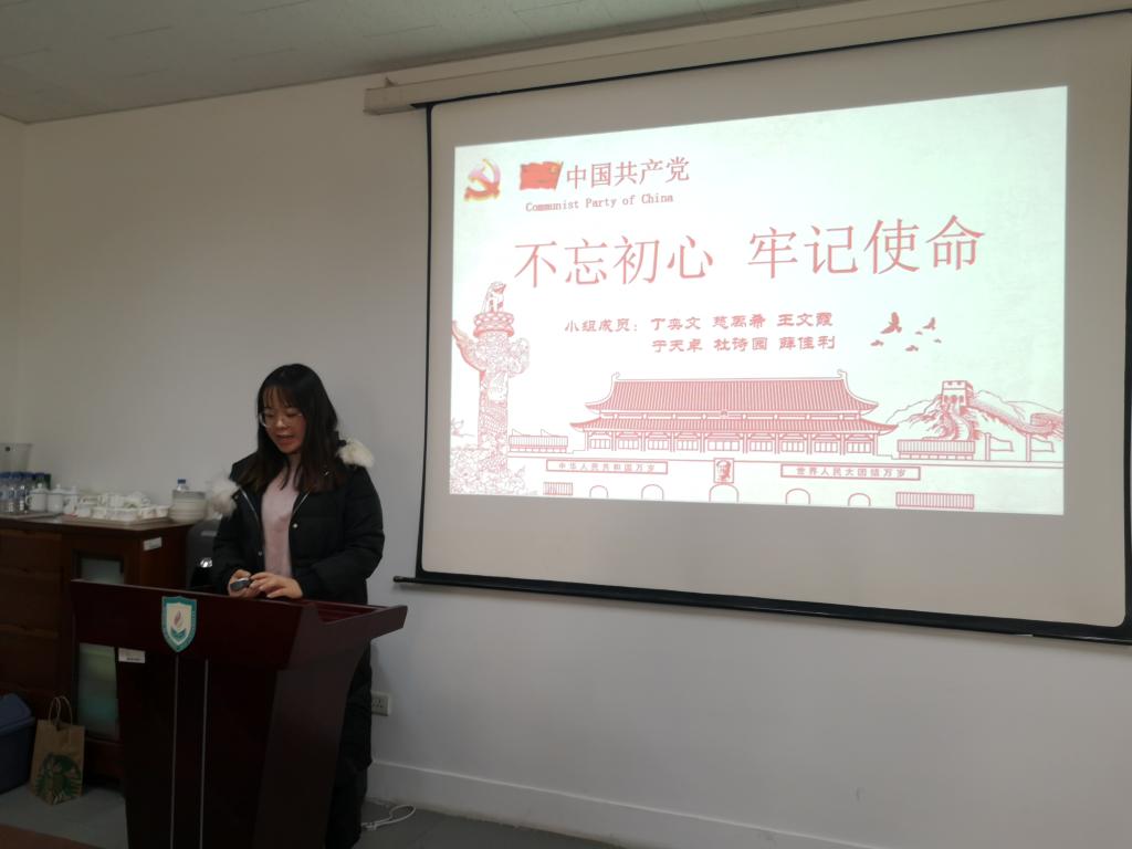 本次活动为员工党员与入党积极分子自行组队,自选主题讲微党课。常方圆老师率先垂范,以其参加校微党课大赛的获奖内容为主题,为同学们上了“传承红色精神,牢记初新使命”的生动精彩的微党课。在活动中员工党员与入党积极分子分为5组,每组根据所感兴趣的内容搜集资料,分别选取了不同的主题:“一生传马终不倦,一脉传承到百年--郑德荣”、“解放的时间--论共产主义的具体特征”、“改革开放四十载,聚焦青年新时代”、“不忘初心、牢记使命”和“光辉的党史”,贴近当前思想、学习和生活实际,贴近时代的主旋律,具有较强的实际意义。