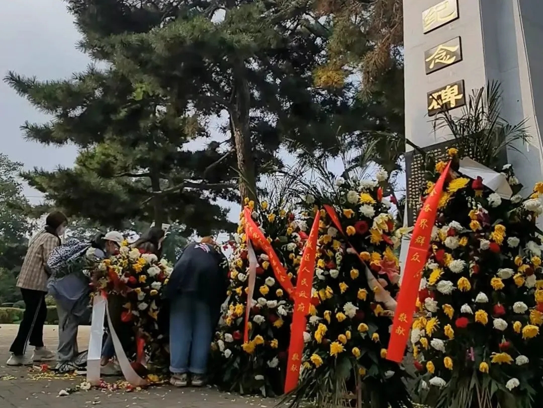 “秘密组织310”劳动小队于10月3日上午抵达胜利公园,踏入公园的那一刻起,四人便收起笑脸,神情肃穆。走到纪念碑前,四位成员敬献上准备好的鲜花,并久久伫立。看着碑上镌刻的文字和碑顶威风凛凛的战斗机,仿佛这位身经百战、热心于中国空军建设的革命先辈在向四位同学讲述着悠久的故事。这天秋风瑟瑟,社会各界群众送来的花篮有的被吹倒,碑前布满落花落叶。四人一起将花篮扶起,向物业借来扫帚清扫落花落叶,用带来的棉布拂去碑面的灰尘。“回望是为了永恒的纪念,缅怀是为了更好的前行。每一个为国捐躯的英魂都会被铭记,每一种精忠报国的精神都会被仰望。通过这次实践活动,我们认识到劳动不仅仅是身体的疲惫,更是心灵的抚慰。”