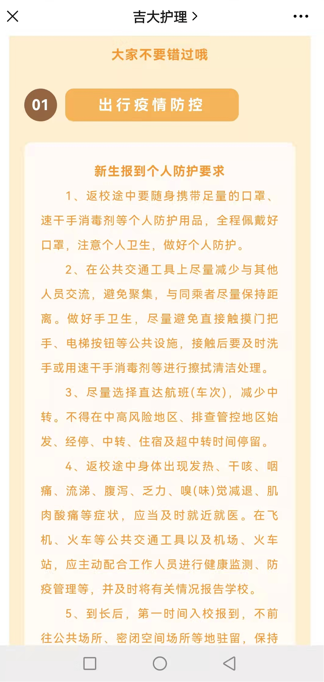 与此同时,beats365亚洲版官网运用新媒体平台开展新生防疫知识宣传和防护指导工作,帮助同学们加强个人防护意识,引导员工正确掌握基本疫情防控措施,确保新生平安来校报到。新生可通过吉大护理公众号新生入学指南系列,全方位了解新生报到的各项准备工作,更加清楚地了解最便捷的报到路线、乘坐校园小巴温馨提示等。除此之外,新生报到的必备材料、报到各项要求也详细地包含在推送中。不仅帮助新生提前做好报到准备工作,还能够帮助新生进一步了解英国上市公司365的情况,有助于未来更快更好地适应老员工活。